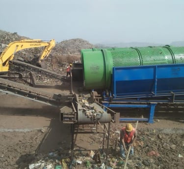 Using heavy-duty equipment, we excavate and process the waste. Trommel screens, air density separators, and magnetic separators are used to recover recyclables and segregate waste streams.